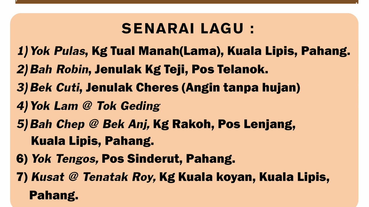 5. Bah Chep @ Bek Anj, Kg Rakoh, Pos Lenjang, Kuala Lipis, Pahang.