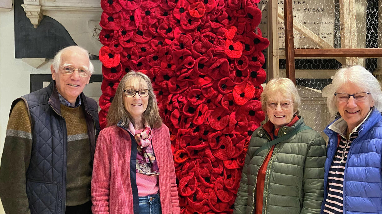 The knitting has ended and now it is time to bring over 15,000 poppies together all ready to Remembrance Sunday. The framework has been constructed and now once again it is time to ask for everyone for help to tie the poppies to the frame to produce a spectacular display.