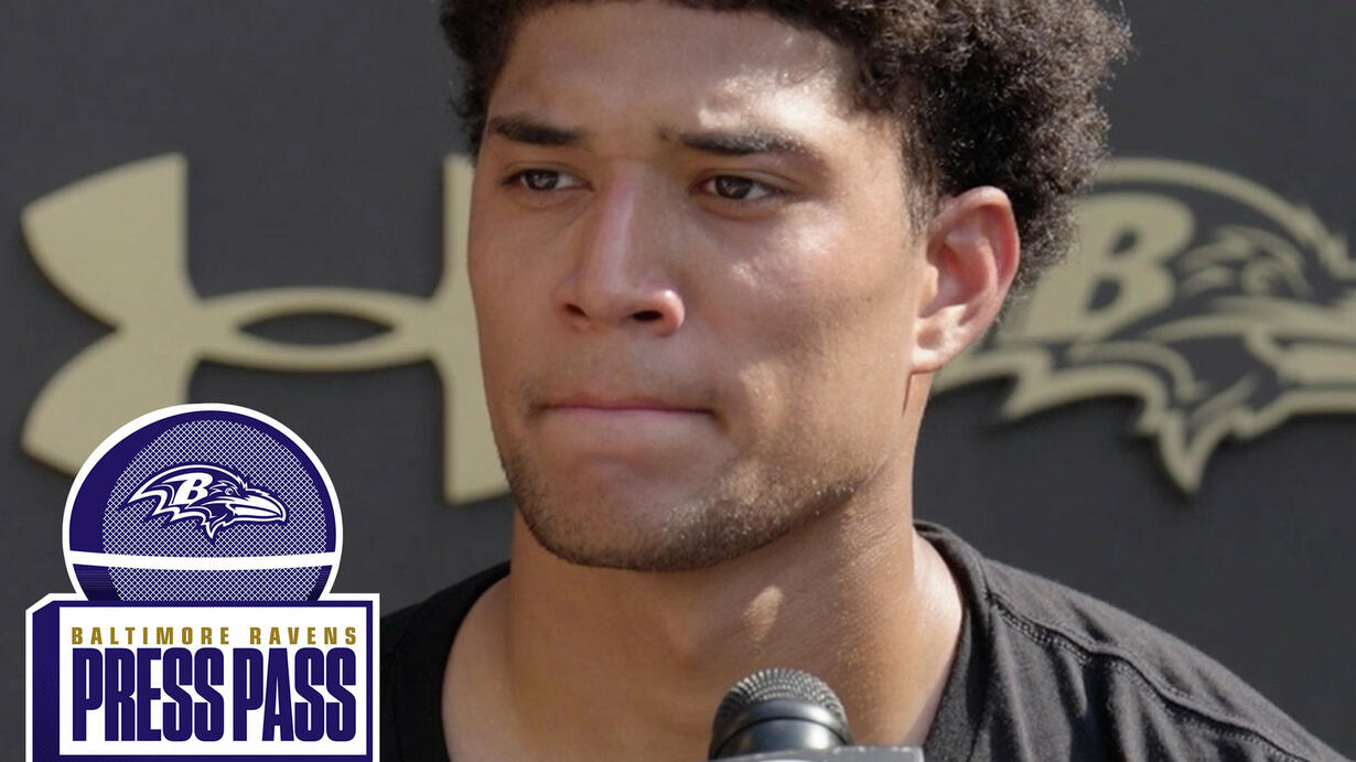 Head Coach John Harbaugh, safety Kyle Hamilton, center Tyler Linderbaum, wide receiver DeAndre Hopkins, and offensive lineman Emery Jones Jr. speak with the media after practice Wednesday.