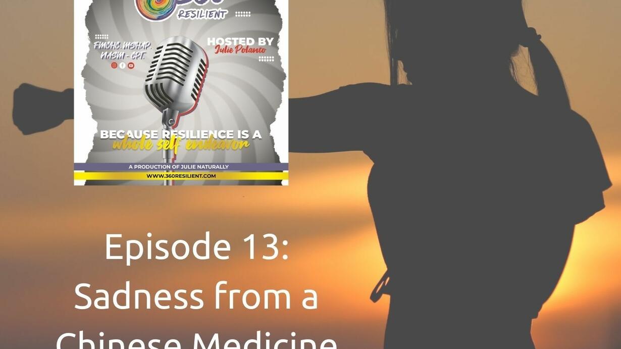 In the first episode in our new series about sadness, Julie talks about sadness and depression from a Traditional Chinese Medicine (TCM) perspective. TCM regards the body in terms of patterns and metaphors, making discussions about the body simpler. TCM teaches that the major organs--heart/small intestine, lungs/large intestine, spleen/stomach, liver/gall bladder, and kidney/bladder--embody different emotions, life stages, disease patterns and tendencies, and much more. When it comes to sadness/grief or depression, which is a more extreme form of sadness, the associated organ is the lung. The heart, or joy, is what keeps sadness in check. Listen to the episode to hear about the interplay between the heart-joy and the lung-sadness and what the TCM perspective says about overcoming depression.