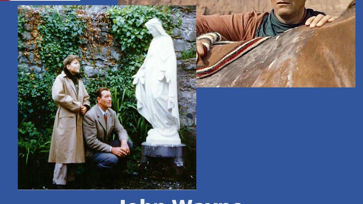 John Wayne, the icon of American manliness and one of the most important film stars of all time, once called himself a "cardiac Catholic." He meant that he intended to become Catholic on his deathbed. Born Marion Morrison he was raised a Presbyterian, but all three of his wives were Catholic. We're not sure how that worked out, since none of them predeceased him, but we leave that to God's grace and the wisdom of the Church. However, the example of many Catholics in his life, particularly his first wife, had a deep impression on him. Despite serious problems with infidelity, John Wayne did manage to become Catholic and make his amends with God before his death.