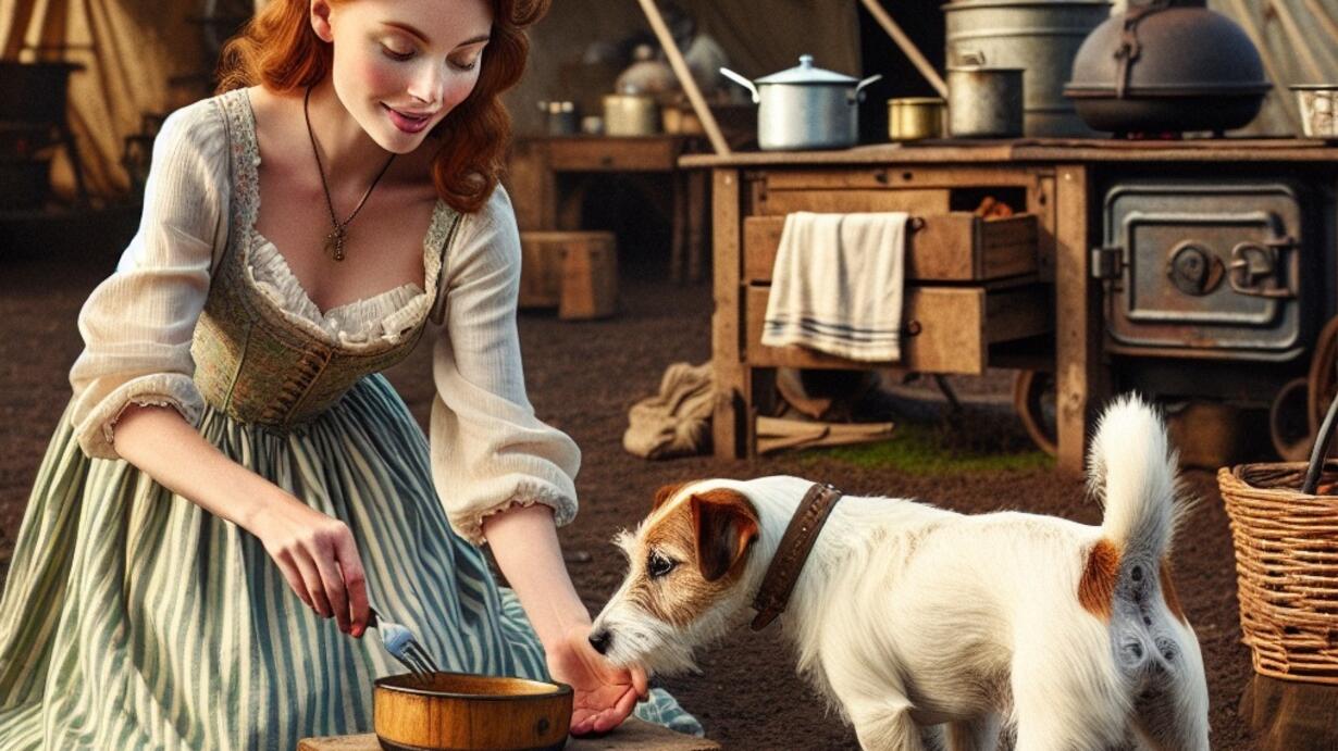 Sweetie said, slipping a leashed. Collar loosely around his neck and giving him another morsel of meat. He focused his attention on Sweetie as she led him through the encampment toward an area where animals grazed and slept. The smell of freshly cooked meats and vegetables wafted through the air, fueling his excitement. Workers looked up from smoking fires and smiled at Peppy, who wagged his tail in response.