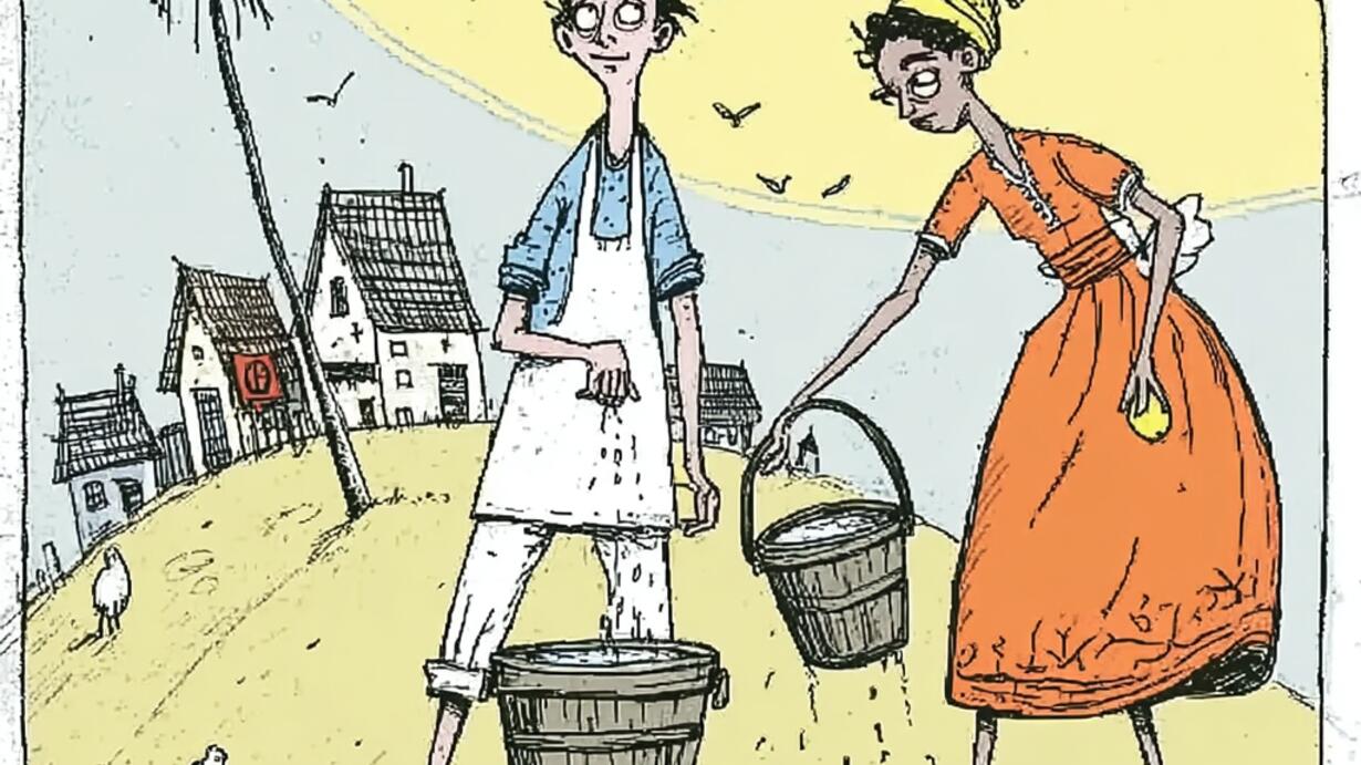 The Lyrical Literacy podcast presents "Jack an' Jill," a vibrant reimagining of the classic nursery rhyme in authentic Jamaican patois. This expanded version follows our familiar duo as they attempt to fetch water from a hill, with Jill suggesting modern alternatives ("Use faucet like mi fada"). Their adventure quickly turns disastrous when Jack trips and they both tumble down, rolling past farm animals and crashing into a dump. After Jack's mother treats his injured head with vinegar, Jill declares she's done with hills altogether, concluding with a cautionary message about staying on level ground to avoid trouble.