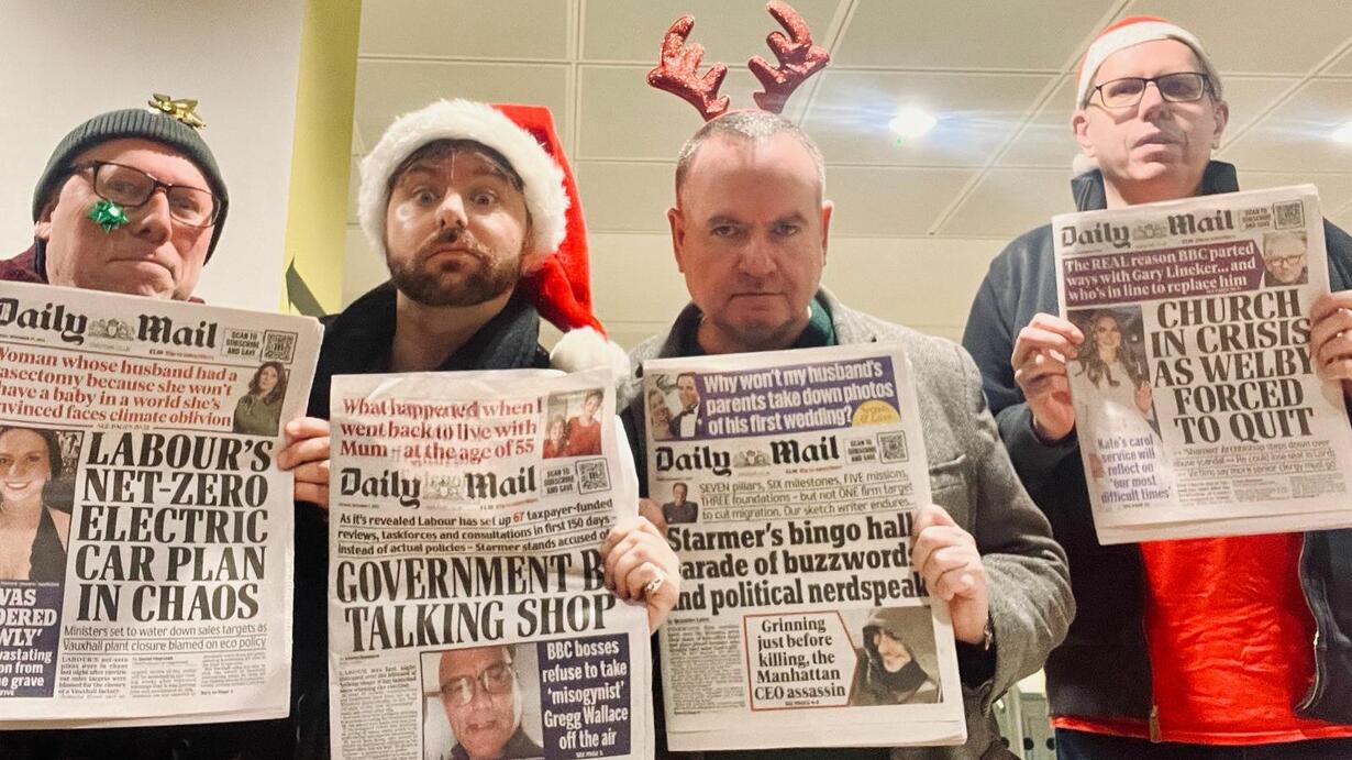 For our Yuletide Special, comedy writer and Christmas cracker joke specialist Andy Flood joins our trio of Mail Bonders to explore recent stories from the Daily Mail. This holiday season we cover what to serve at a festive party to appear Upper Class, Cliff Richard's "vile" gravy, the world's largest thumb, delicious Nazi raccoons and a Radio Times from Christmas 1980.