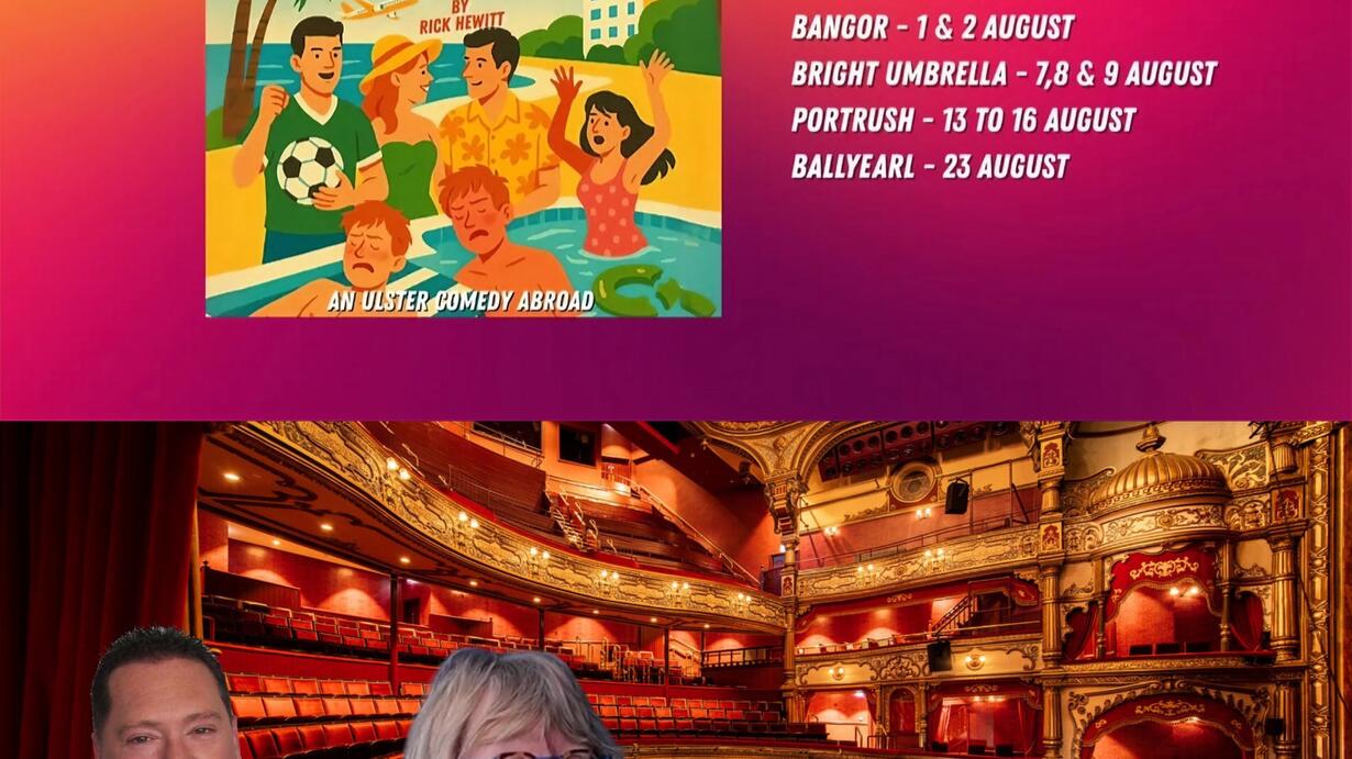 This week on Robin & Jane In The Stalls, we pack our factor 50 and head to sunny Spain (well... in spirit!) to review Holiday Flush by Rosemary Drama Group   Set in June 1982, this hilarious play sees two Belfast families jet off to the Costa Blanca in search of sun, fun, sangria… and maybe a Northern Ireland win against Spain in the World Cup! But of course, things don’t go quite to plan – with delayed flights, holiday romances, blistering sunburn, and a poolside disaster!   Expect: Chaotic travel Holiday Romance 80s nostalgia (and sunburn) Football fever Laugh-out-loud moments   Robin and Jane break down the performances, the storytelling, and just how many 80s throwbacks they could count in one show! Listen now wherever you get your podcasts!   Want to catch the show? Portrush Town Hall – 13th–16th August Courtyard Theatre, Ballyearl – 23rd August