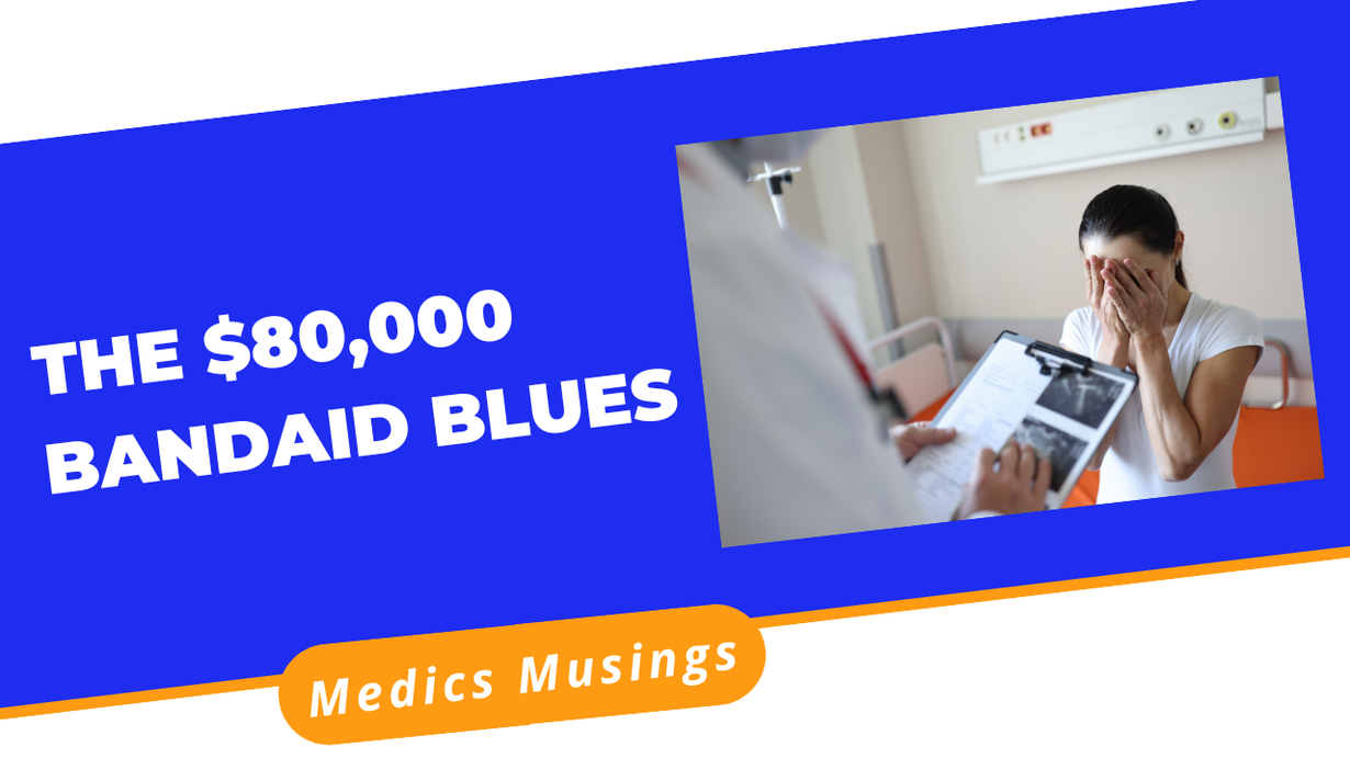 "I  walked into the ER with a paper cut. They put me in a room, and my wallet went bust.  Five specialists came in..."