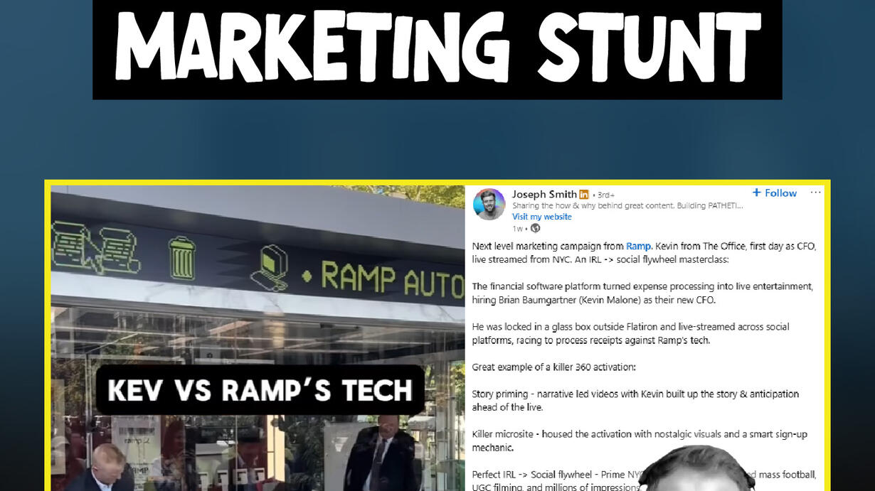 Ramp somehow made one of the most boring SaaS products on Earth go viral. They locked Kevin Malone from The Office in a glass box for his “first day as CFO,” live from Flatiron in NYC. Receipts flying, weddings happening, TikTok stars crashing the scene, and hundreds of people gathering to watch. They made some noise and people showed up. In this episode of Notorious B2B, we break down how Ramp pulled off the most entertaining brand campaign in recent B2B history, and what your team can actually learn from it. Plus: