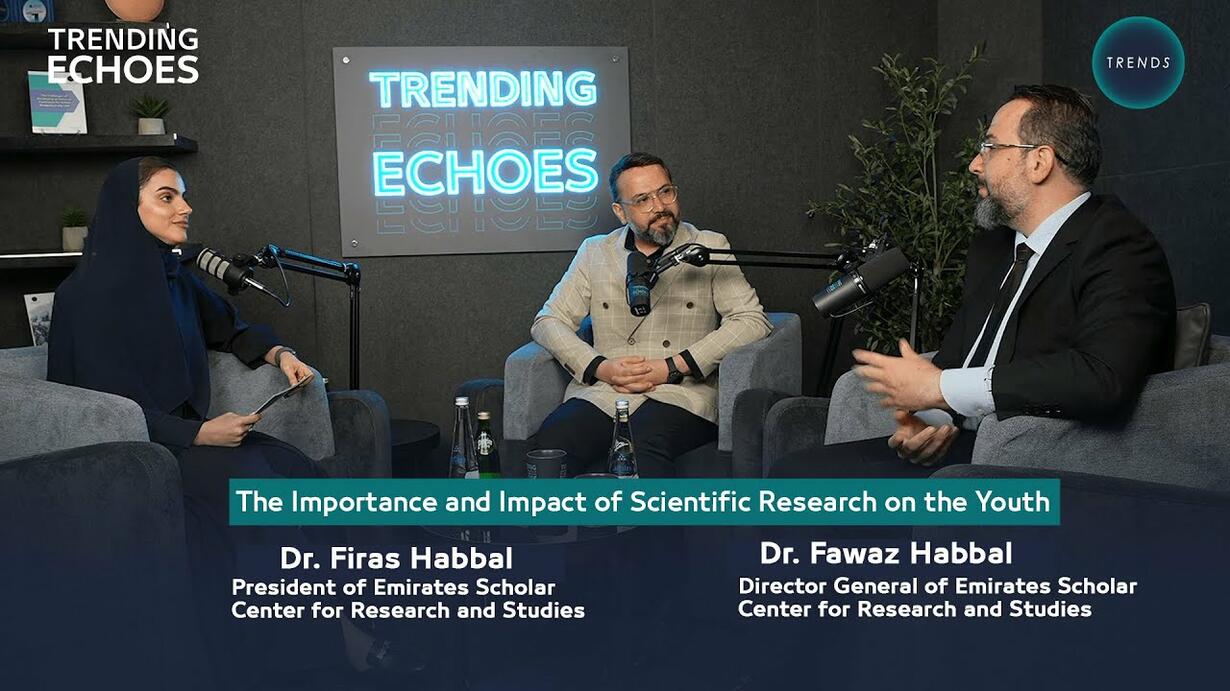 In this episode of Trending Echoes, we welcome two remarkable guests, Dr. Firas Habal, President of the Emirates Scholar Center for Research and Studies, and Dr. Fawaz Habal, Director General of the same centre. The twins are leading figures in scientific research, innovation, and excellence. The episode focuses on the importance of scientific research for youth, its impact on intellectual and professional growth, and how to inspire the next generation to engage in research.