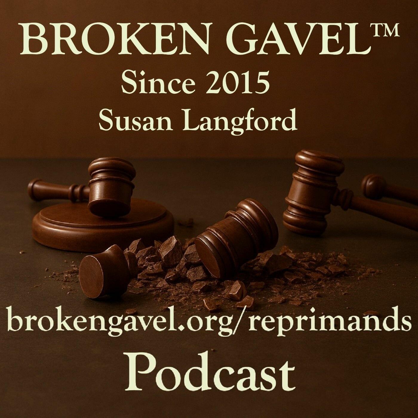 Broken Gavel and Susan Langford are more than just names. I built a legacy which began in 1985, when corruption ruled in a Connecticut courtroom on April Fool's day. What happened next was no laughing matter, because that corruption on April Fool’s Day destroyed lives. Corruption and unethical conduct by legal scholars who ignore the rule of law and ignore the Professional Rules of Conduct Codes, have no right to work in our American justice system. Corruption and greed changes people, causes pain, rips families apart, destroys children and buries truth deep in the pits of hell. It changed the direction of my life, forced me to deal with reality on a level I never thought possible. It forced me to ask questions, to investigate and as a result I spent a lot of time at law libraries in courthouses all over America. Because after the damage was done and my transformation had taken hold, I decided my career path was helping others to understand that broken gavels do not have to destroy your life, you can take control, you can do something about it, and you can overcome the damage done by unethical conduct and corruption in courtrooms. I continued working, fighting against unethical conduct, against corruption, helping the injured overcome the pain caused by unethical legal scholars. For more than 23 years I worked in many states, bravely walking into the “lion’s den”, into the pit of corruption. And without any help, without any lawyers working for me, I took on the corrupt and won back the justice that the unethical took away from their innocent victims. I expanded, handling cases that involved insurance fraud, went after those committing medical malpractice and helped people get the compensation they deserved. I felt their joy when seeing the smiles back on the faces of the injured. I actually saved lives! In 2012, I registered Bringing Down Goliath, Based on a True Story, it was my first attempt at writing a book. On April 17, 2013, I registered a revision for Bringing Down Goliath. In 2015 I wrote and registered Broken Gavel, a screenplay by SA Roberts, my pen name. Later in 2024, I registered Broken Gavel inspired by a True Story, a screenplay revision. And on June 16, 2025, I registered the book, Broken Gavel a Legal Drama Inspired by a True Story. Other writers have used titles such as: Broken Gavel, a work of fiction by Nicholas A. Clemente, 2005. He is now deceased. A Broken Gavel in 2023, by John Troy King. As of September 2025, I have not found anyone who has made a successful career out of single-handedly investigating, bringing to court and without the help of any attorney, successfully winning an outcome for truth and justice. To my knowledge, no other non-lawyer has ever been that successful for 23 plus years. This series of podcasts will explore my 23-year journey of single-handedly helping repair Broken Gavels everywhere, beginning with myself and the injured. Special guests will be invited on to tell their stories. Stay with me and listen to my first episode now, because it will open your eyes and give you insight into why corruption and unethical conduct is out of control, but more importantly, I will talk about what we Americans can and must do about it. Lastley, stay up to date with the happenings on my website at brokengavel.org