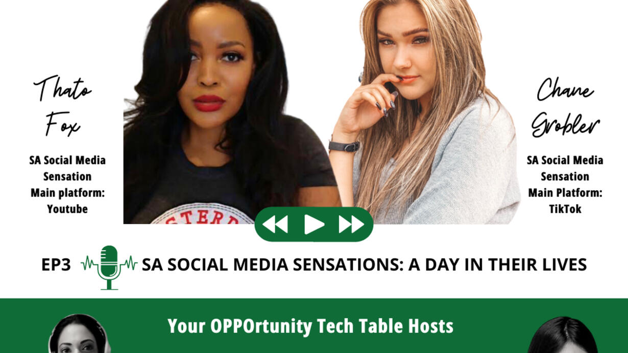 In this week's episode Yavi Madurai & OPPO's Avashnee Moodley welcome South African Social Media Sensations, Youtuber Thato Fox & @ Tik Tok-ker Chane Grobler to 'The Table' to chat about is a career in being a Social Media Influencer, a behind the scenes look at the lives, and what ‘work’ looks like for them