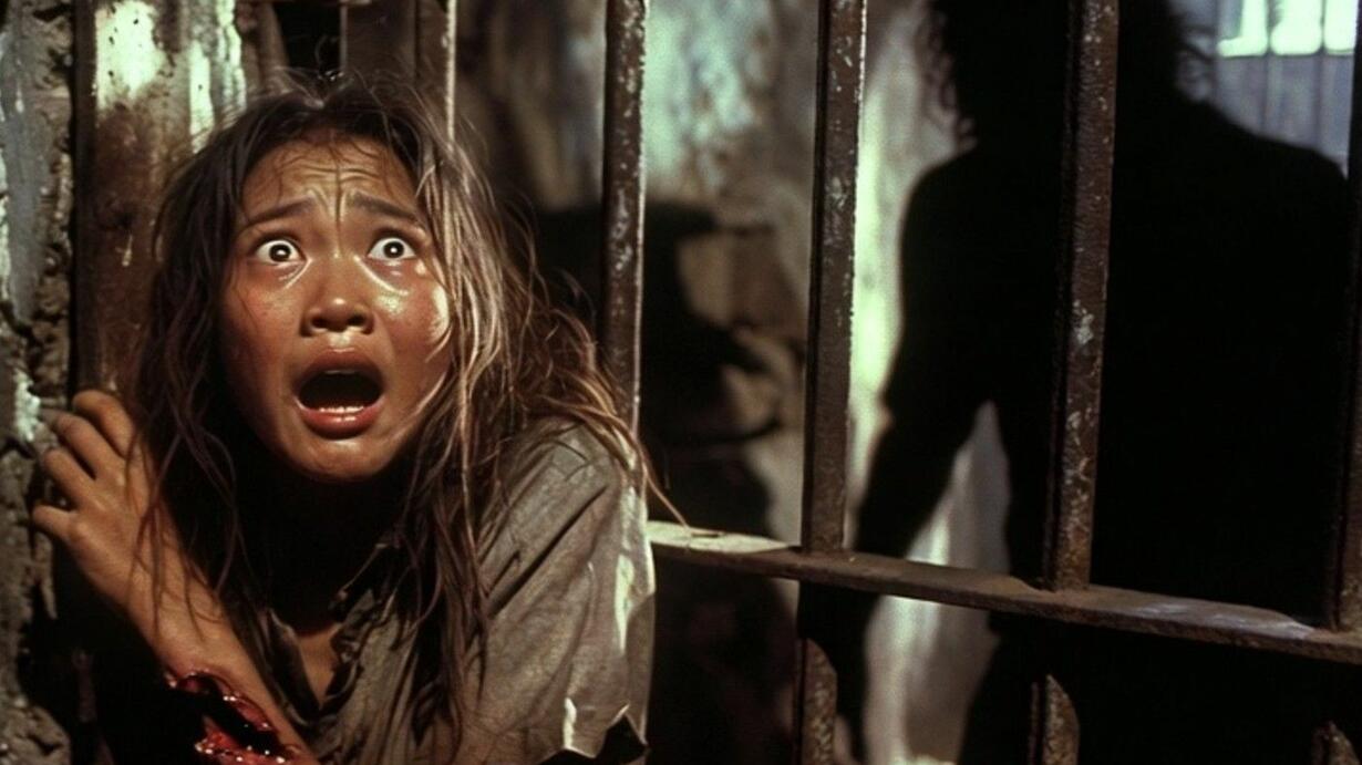 her cowering in her cell, bloodied and sporting bite wounds