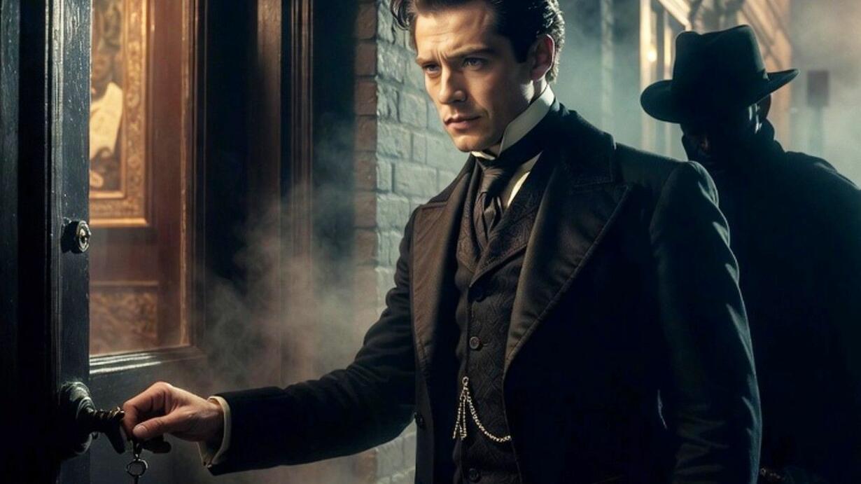 gas lit street lights. The man stood silently, a dark
