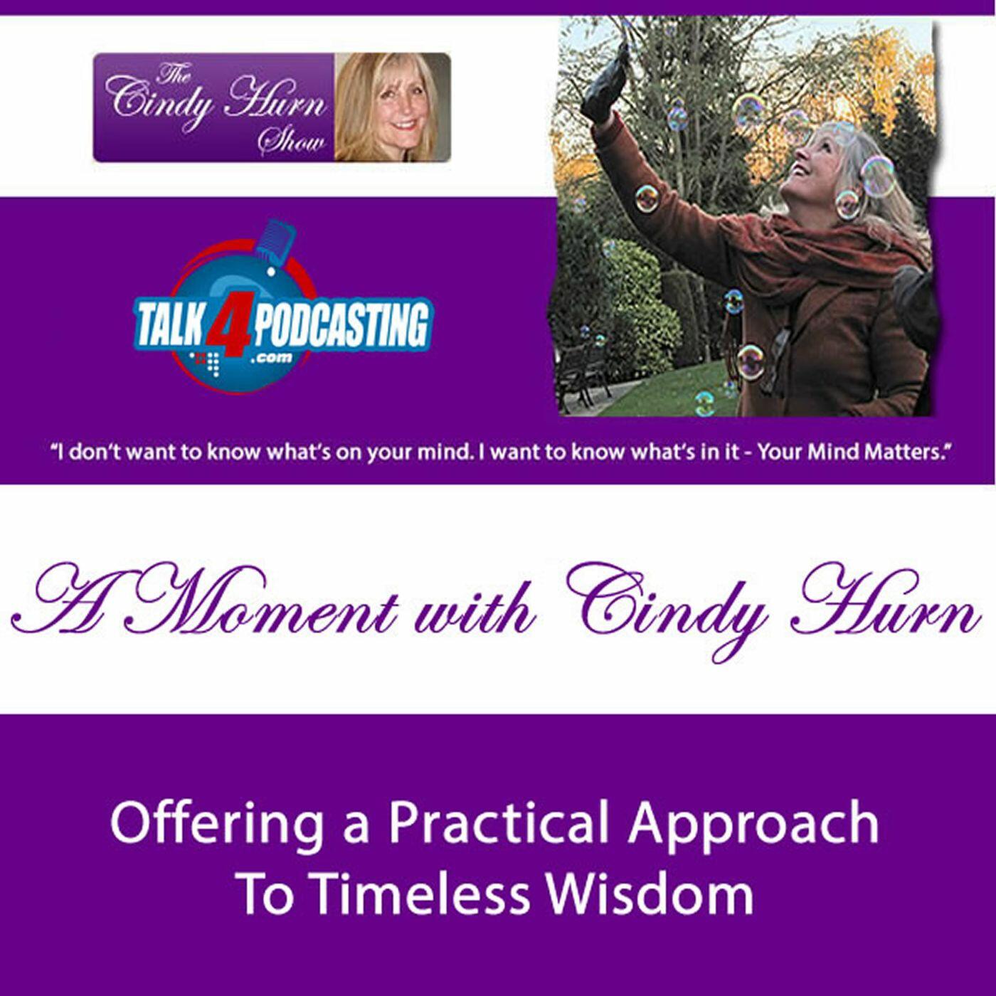 As a Transformational Coach Cindy learns by watching life. With rich metaphorical language and a relaxing voice she invites you to drop down a gear and share her depth of thought. Combining Spiritual Perspective with a practical approach to common sense we are reminded of innate wisdom. Cindy's voice blends Heart and Word opening the doors of Awareness leaving us wanting more. This show is a best of The Cindy Hurn Show Podcast is brought to you by Talk 4 Podcasting (www.talk4podcasting.com/) on the Talk 4 Media Network (www.talk4media.com/).