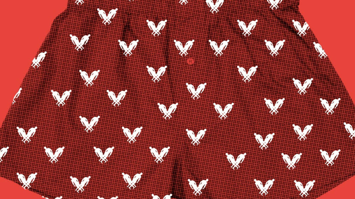 under my boxer shorts, the cotton band yielding easily to