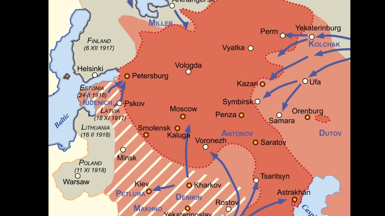 The Bolsheviks face numerous opponents across Russia, and struggle to gain control of all lands of the old Tsarist Empire.