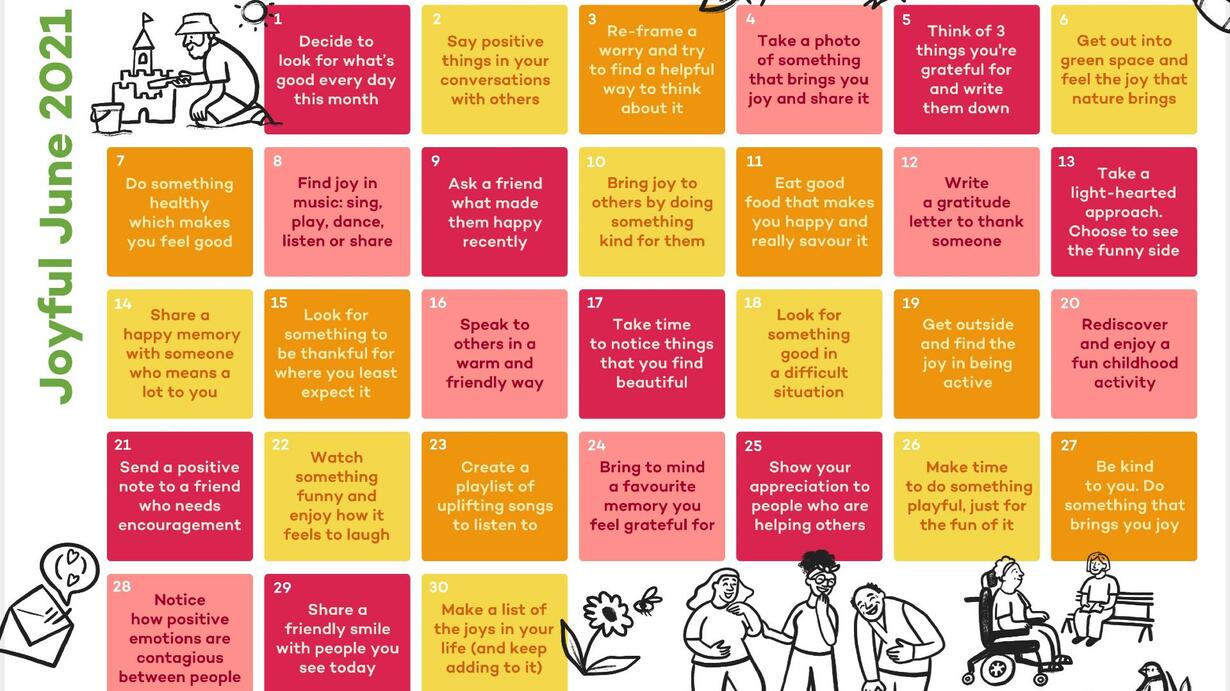 Josie from Action for Happiness takes us on a short journey through the Joyful June 2021 calendar.