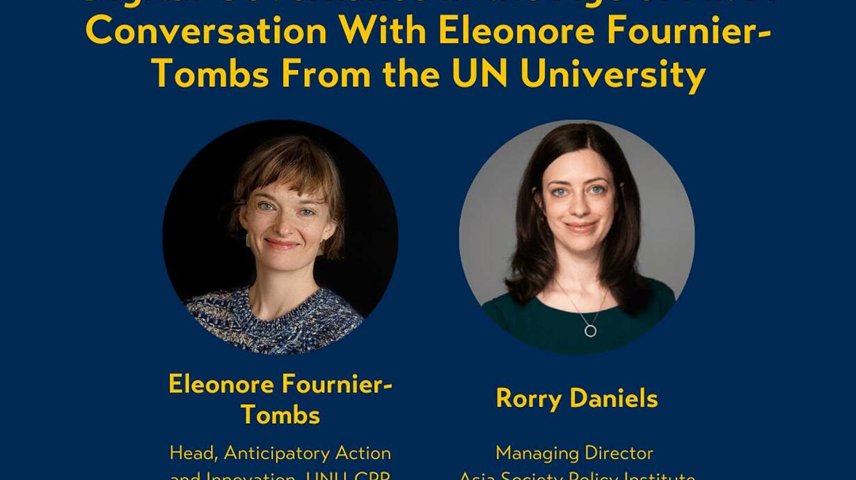 Dr. Eleonore Fournier-Tombs, head of Anticipatory Action and Innovation at the UNU-CPR, speaks with Asia Society Policy Institute Managing Director Rorry Daniels about the importance of digital governance and the UN's new Global Digital Compact. United Nations. The conversation covers how AI can accelerate economic development and climate action while managing the associated risks.