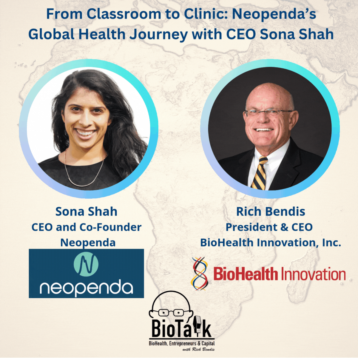 In this episode of BioTalk, host Rich Bendis welcomes Sona Shah, CEO and Co-Founder of Neopenda, for an inspiring conversation on innovation, impact, and scaling medical technology in underserved markets. Sona shares how a formative experience teaching in rural Kenya ignited her passion for global health, leading to the creation of neoGuard, a wearable vital signs monitor tailored for low-resource settings.