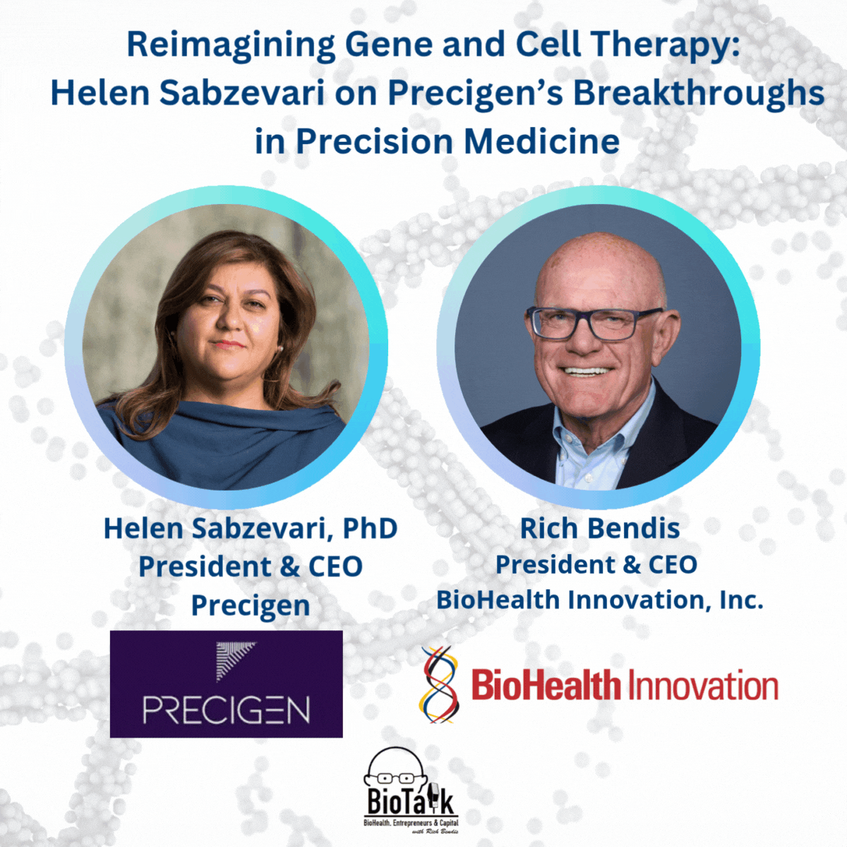 In this episode of BioTalk, Rich Bendis welcomes Dr. Helen Sabzevari, President and CEO of Precigen, to discuss the company’s cutting-edge science in gene and cell therapy. Dr. Sabzevari shares how Precigen’s unique AdenoVerse® platform has powered the development of PRGN-2012, a potential first-in-class therapeutic currently under FDA priority review for the treatment of adults with recurrent respiratory papillomatosis (RRP), a rare and devastating disease. She also highlights advances across Precigen’s broader pipeline in immuno-oncology and autoimmune disease and reflects on how Maryland’s BioHealth Capital Region has supported the company’s innovation and growth.