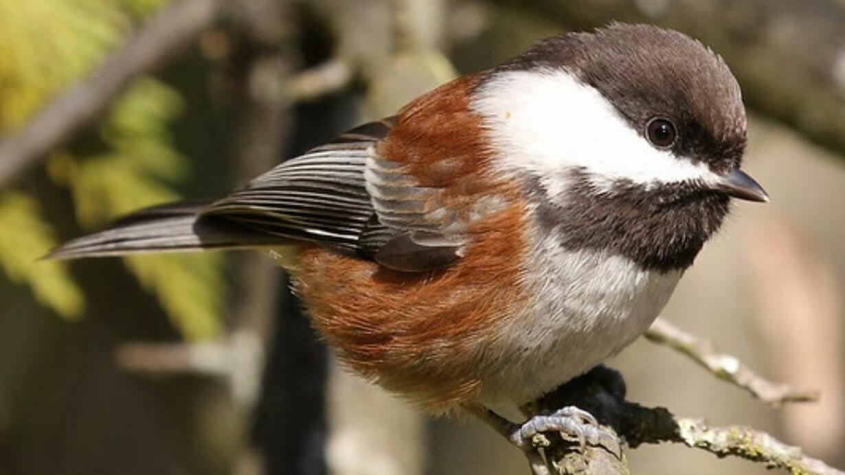 Chickadees are tiny songbirds named for their characteristic song and there are seven species found in North America. You'll find the Black-capped Chickadee across the northern U.S. into Canada. The Carolina Chickadee holds sway in the Southeast. Hear the husky voice of a Mountain Chickadee in the Rockies. Travel to Canada for the Boreal Chickadee. This Chestnut-backed Chickadee calls the Pacific Northwest home. The Mexican Chickadee just nudges into southeast Arizona. And the Gray-headed Chickadee turns up north of the Arctic Circle. Which of these chickadees sings near you?