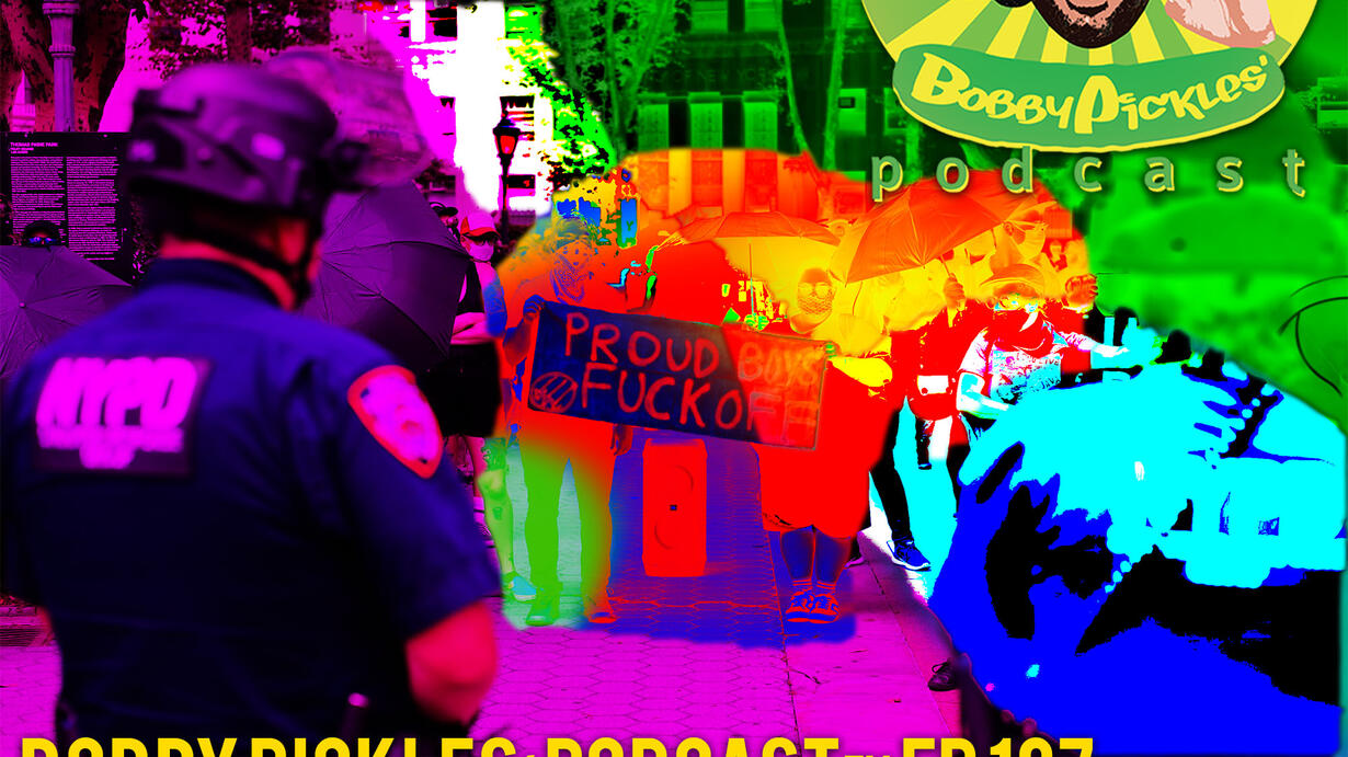 It's not a secret. I find this human being morally reprehensible. He claims to be the most liberal Proud Boy after me, and that would be true if he were actually a Proud Boy because this stupid motherufucker swings way way left. He openly admits to have voted for Biden. What a dick. He was accosted by ANIFA over the weekend at an event in NYC's Foley Park. Which serves him right. He deserved. it. His video was shared far and wide, even by Andy Gio — this he did not deserve. Actually, this guy is always trying to get out of the limelight, but trouble always seems to follow him. Get ready for me and a couple of my right wing chums to take our turns at verbally accosting a libtard, and we aren't even ANTIFA members. Sit back, grab a snickers bar — Welcome to Episode 197 of Bobby Pickles Podcast!