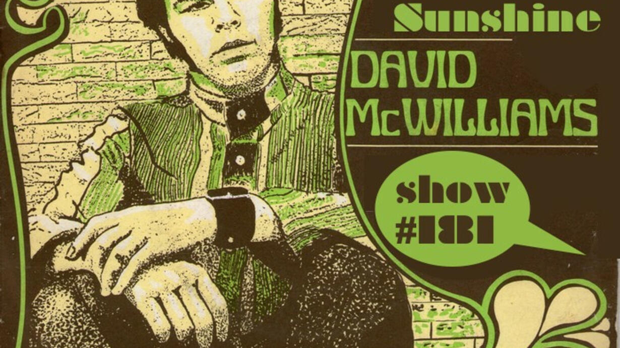 In an episode first aired April 26, 2021: DJ Andrew Sandoval spins vinyl singles by The Deep Six, The Cascades, The Losers, Bobby Lile & The El Montes, The Shy Guys, John Dunn, Disillusion '21, Dick & Dee Dee, Solid Gold, The New Generation, Josie Taylor, De Maskers, The Shame, M.P.D. Limited, Wendy & Bonnie, David Kershenbaum, Jennifer Warren, Bobby Darin and Richard Dawson. In the Sunshine spotlight, North Ireland's David McWilliams sings original songs from his three 1967 albums on UK's Major Minor label (as well as some non-LP sides).