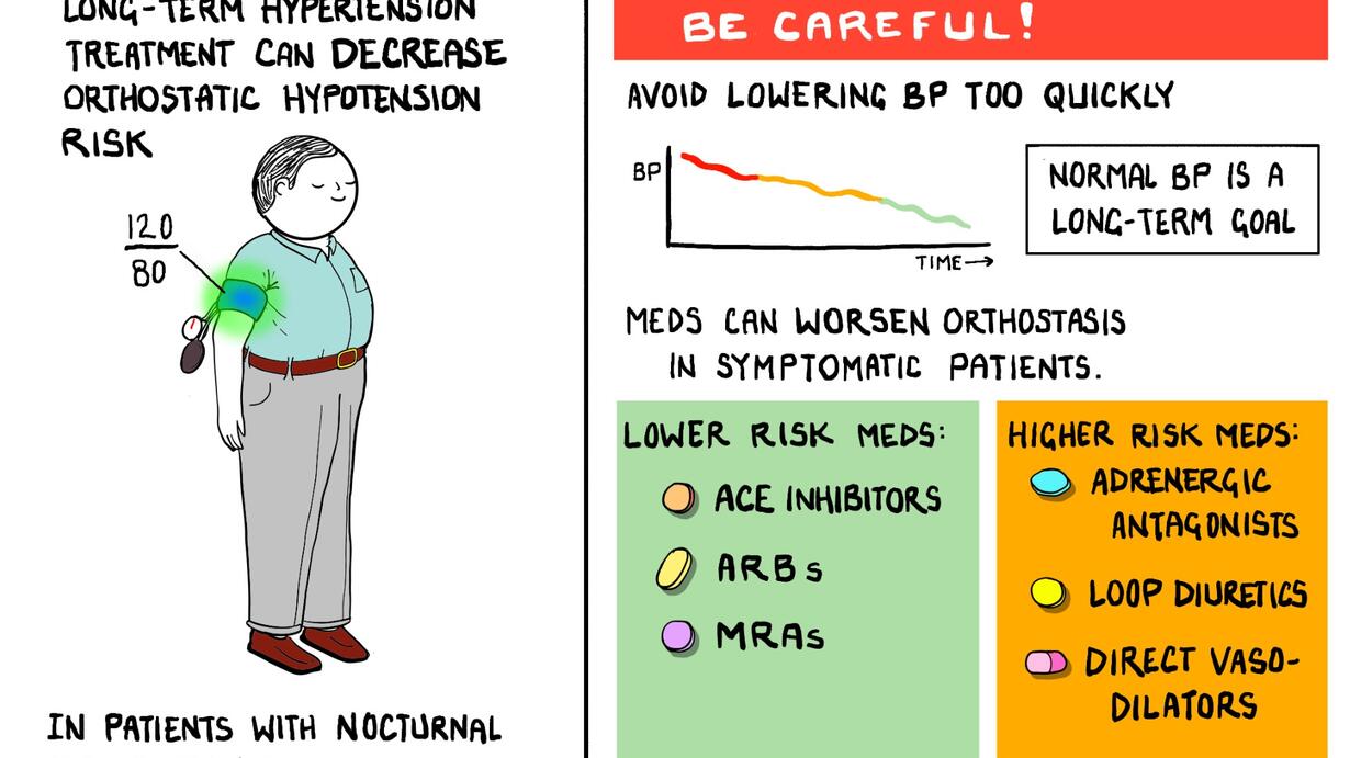Medications for orthostatic hypotension! When to initiate treatment, how to use them safely, and what to do when new issues arise during treatment. How do those change if someone has autonomic failure? What do you do when your patient has hypertension AND also has orthostatic hypotension?
