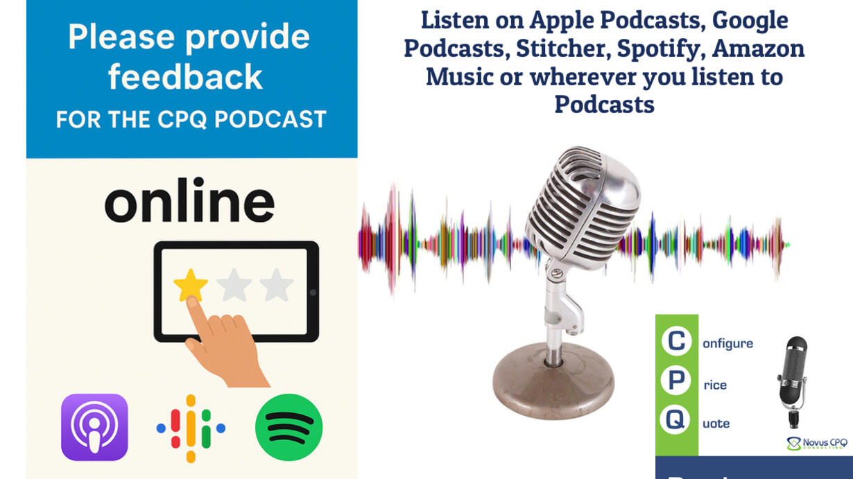 In this episode, Frank talks about CPQ Podcast listener feedback. We’ve heard from many of you that the podcast brings value in different ways—whether it’s preparing for job interviews, learning about new CPQ solutions, or gaining insights from inspiring leaders and fresh ways of thinking.