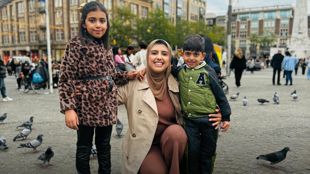 Beeld: Amal Helles met haar dochter Maryam en zoon Wajih in Amsterdam