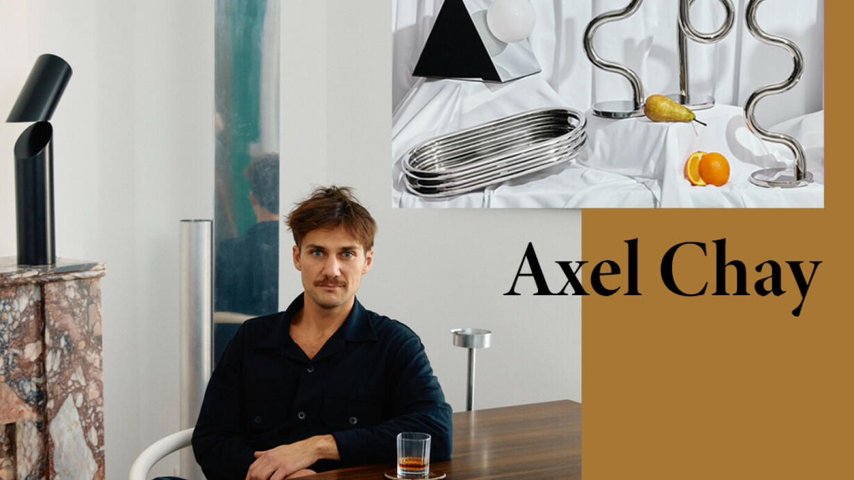 Axel Chay est bien connu dans notre milieu depuis qqs années notamment grâce à qqs pièces fortes en passe de devenir des icônes du design. Un design graphique, tout en courbes, presque sculptural, ludique et décalé. C’est d'ailleurs ce style Memphis qui plait tant, aussi bien aux plus pointus d’entre nous qu’au grand public qui l'a découvert avec Made In Design ou Monoprix.