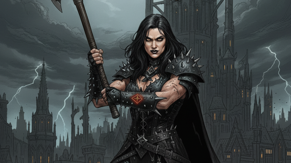 In the smoldering ruins of the Emberwound Mountains, where gods once burned and stone still remembers fire, a silent child was born beneath a blood eclipse. Her name is Vaunna Skorrval — warrior, exile, and the living sentence of a forgotten god. This episode tells the myth of The Ember Judge: a woman who carves judgment into the world itself, where every scar is scripture and every sin demands flame.