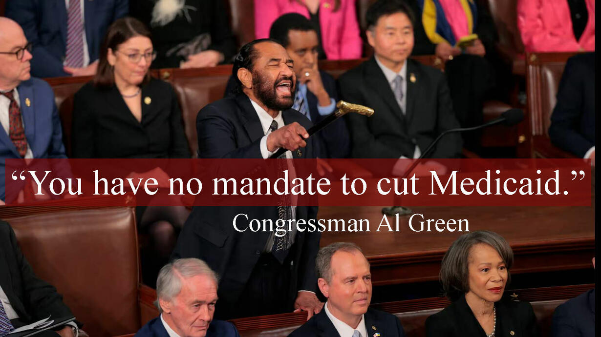 Congressman Al Green, a democrat from Texas, screamed. "You have no mandate to cut Medicaid!"