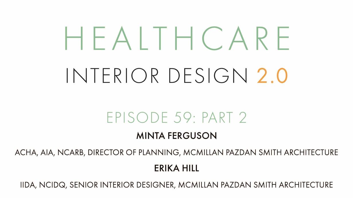 On part 2 of today’s episode, Cheryl continues her conversation with Erika Hill, IIDA, NCIDQ, Senior Interior Designer, McMillan Pazdan Smith Architecture and Minta Ferguson, ACHA, AIA, NCARB, Director of Planning, McMillan Pazdan Smith Architecture.