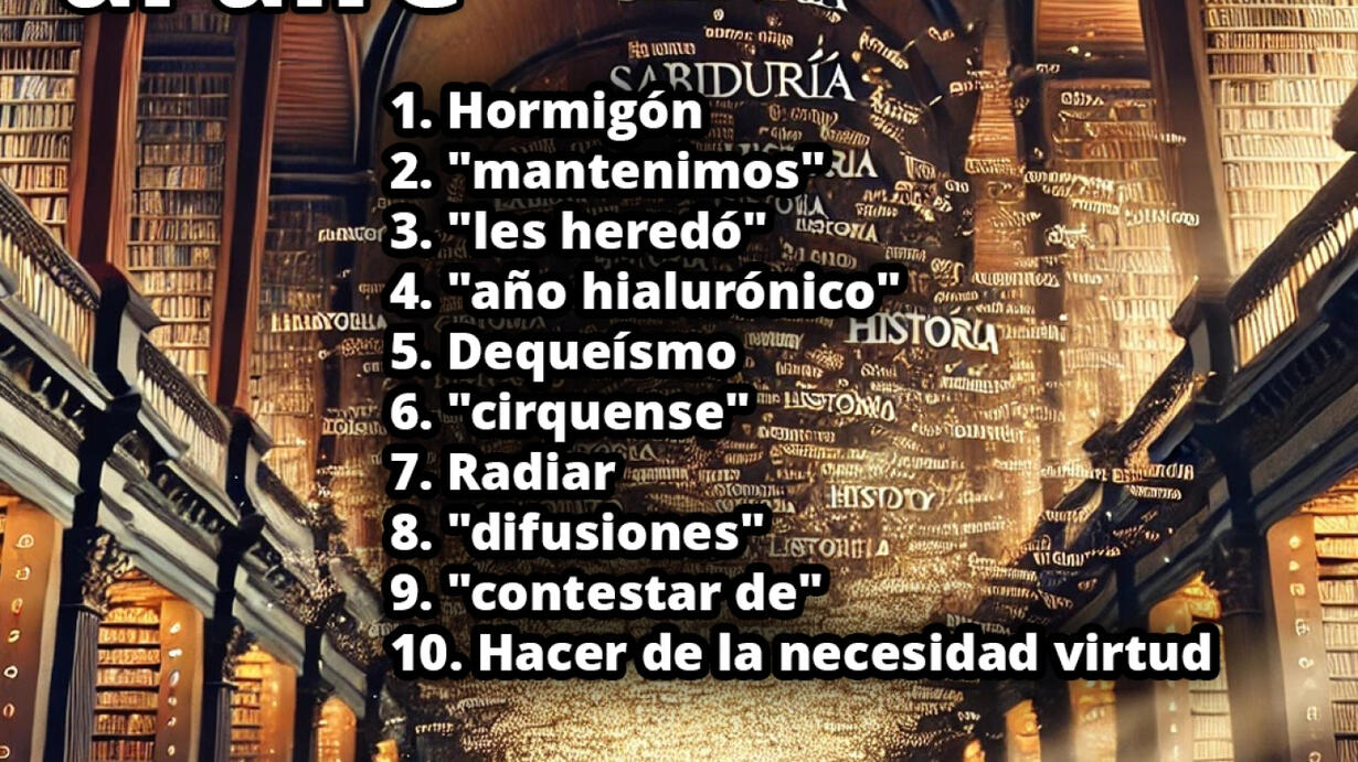 Con Sagrario Fernández-Prieto. https://www.cesarvidal.tv/palabras-al-aire/videos/palabras-al-aire-30-06-25 Pulsa aquí para donar en el Crowdfunding de La Voz: http://kck.st/42UCR95 1. Hormigón 2. "mantenimos" 3. "les heredó" 4. "año hialurónico" 5. Dequeísmo 6. "cirquense" 7. Radiar 8. "difusiones" 9. "contestar de" 10. Hacer de la necesidad virtud