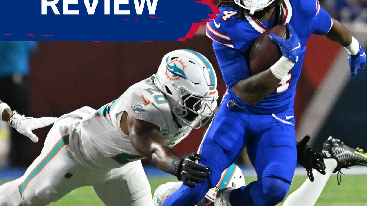 Josh Allen's precision passing and James Cook's breakout rushing performance propel the Bills to victory. Joe Marino dissects Allen's adaptability to Miami's defensive scheme, highlighting his impressive 78.6% completion rate despite a low 3.3-yard average depth of target. The analysis covers Buffalo's defensive challenges, including situational struggles and missed tackles, while evaluating key player contributions and snap counts.