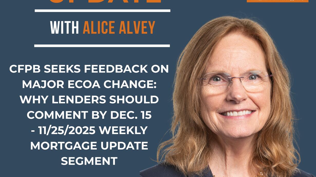 This podcast segment highlights the CFPB’s request for industry feedback on a significant ECOA interpretation change that could prevent regulators from using reverse-engineered HMDA data to allege fair lending violations when no discriminatory policy exists.