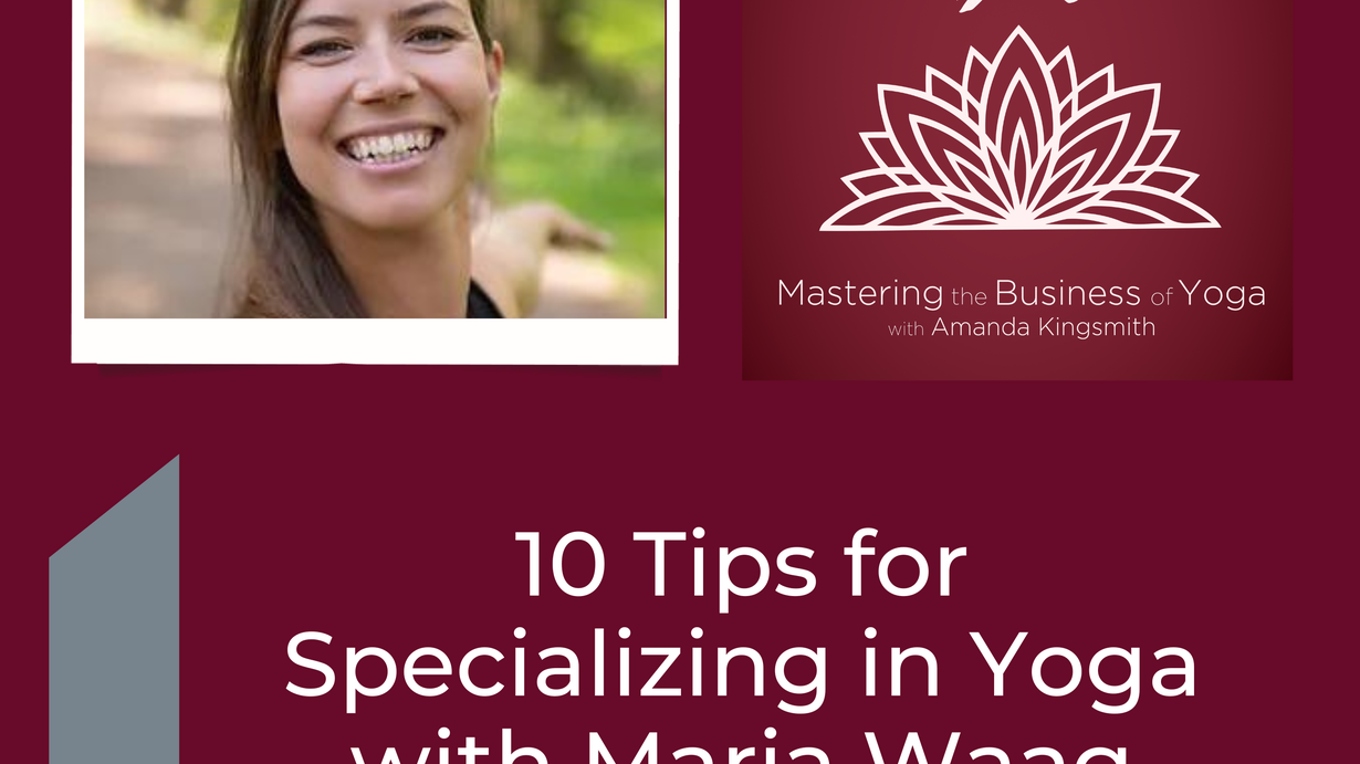 With a very thorough education and many specializations she is focusing on helping 1-on-1 clients learn to use yoga and mindfulness to help with specific needs, such as pain, trauma, concussions and much more, and uses her deep understanding of anatomy and biomechanics to help her students with injuries and challenges. In this episode of the podcast, Maria shares how she got into yoga and what inspired her to start teaching, as well as how she started specializing and working with students 1-on-1. She share her top 10 tips for specializing in yoga for anyone who is looking to dive deeper in their business and support their students on a personalized level! This episode is jam packed with goodness.