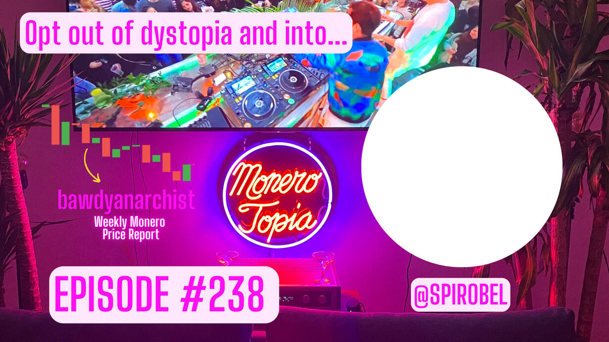 47e6GvjL4in5Zy5vVHMb9PQtGXQAcFvWSCQn2fuwDYZoZRk3oFjefr51WBNDGG9EjF1YDavg7pwGDFSAVWC5K42CBcLLv5U OR DONATE HERE: https://www.monerotalk.live/donate GUEST LINKS: TIMESTAMPS (00:00:00) Monerotopia Introduction. (00:11:17) Monerotopia Guest Segment w/ Spirobel. (01:19:53) Monerotopia Price Report Segment w/ Bawdy. (02:15:26) Monerotopia News Segment w/ Doug. (02:16:19) $1M $ZEC short. (02:17:02) What CBDC represents. (02:18:20) MoneroToshi1k post. (02:18:42) ChatControl has been withdrawn by the Danish EU Presideny. (02:19:43) Simplex Chat network needs decentralized blockchain. (02:27:05) Monerotopia Viewers on Stage Segment. (03:42:19) Monerotopia Finalization. NEWS SEGMENT LINKS: https://x.com/liberlion17/status/1984293092170543607?s=46 https://x.com/monerotoshi1k/status/1984327934401003627?s=46 https://x.com/privacy_guides/status/1983932843970490845?s=46 https://x.com/simplexchat/status/1983437418578751944?s=46 https://x.com/moneroresearchl/status/1982981747999404070?s=46 SPONSORS: PRICE REPORT: https://exolix.com/ GUEST SEGMENT: https://cakewallet.com & https://monero.com NEWS SEGMENT: https://www.wizardswap.io XMR.BAR: https://xmr.bar Don't forget to SUBSCRIBE! The more subscribers, the more we can help Monero grow! XMRtopia TELEGRAM: https://t.me/monerotopia XMRtopia MATRIX: https://matrix.to/#/%23monerotopia%3Amonero.social ODYSEE: https://bit.ly/3bMaFtE WEBSITE: monerotopia.com CONTACT: monerotopia@protonmail.com MASTADON: @Monerotopia@mastodon.social MONERO.TOWN https://monero.town/u/monerotopia Get Social with us: X: https://twitter.com/monerotopia INSTAGRAM: https://www.instagram.com/monerotopia DOUGLAS: https://twitter.com/douglastuman SUNITA: https://twitter.com/sunchakr TUX: https://twitter.com/tuxpizza