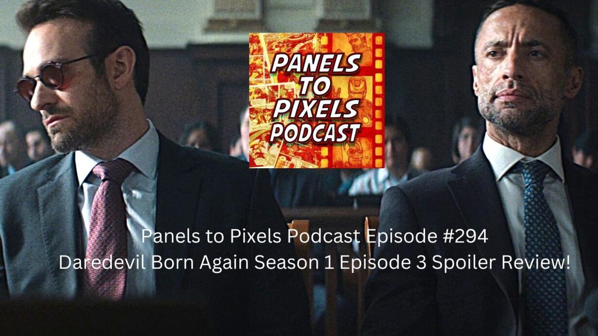 Hey Panelers! This episode of the podcast Mark, Steve, Rob and Becky continue their coverage of Daredevil Born Again found on Disney Plus. Within this episode of the podcast, we break down what we liked about the episode, Characters and story so far within the show. We had a great time discussing the progress of Matt since he decided to do more legal help in the world instead of being the red vigilante we all know. Plus, we break down our thoughts of Fisk and give our predictions and thoughts of the show as progresses this season.