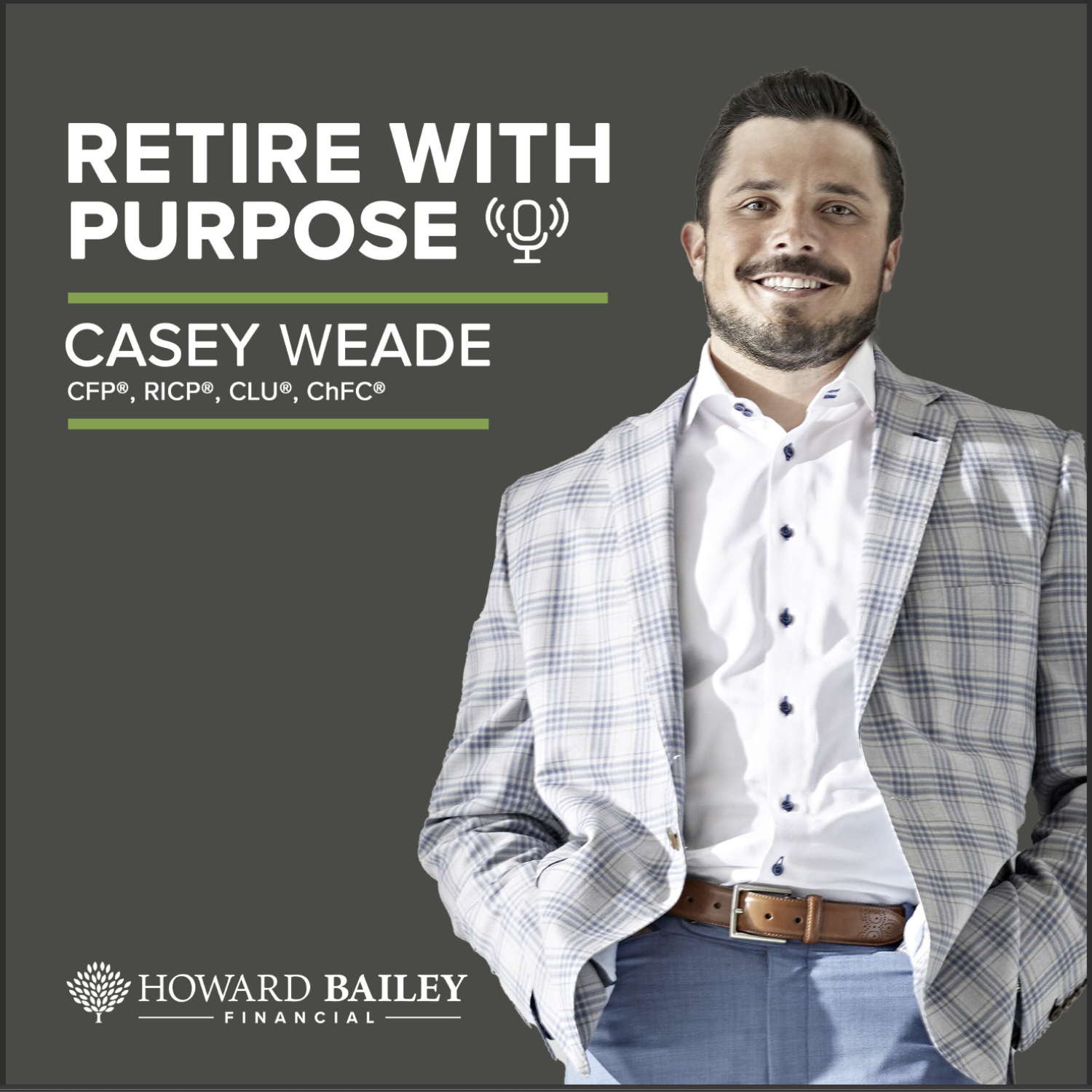 Whether you are in retirement or have yet to make the transition, The Retire With Purpose podcast is a show designed to help you maximize your financial confidence and elevate your fulfillment in this chapter of life. Each week Casey Weade, a CERTIFIED FINANCIAL PLANNER™ and Founder of Howard Bailey Financial, discusses thoughts and ideas with some of today's foremost names in finance and retirement, as well as trending topics that could impact your bottom line. These strategies can help you make better financial decisions so you can live the lifestyle you’ve always imagined and deserve. Investment Advisory Services may be offered through Howard Bailey Securities, LLC, a registered investment adviser. Working with Howard Bailey Securities, LLC, cannot guarantee investment success or that specific financial goals will be achieved. For more information on professional designations, visit finra.org/investors/professional-designations. ©2024 HOWARD BAILEY FINANCIAL, INC.