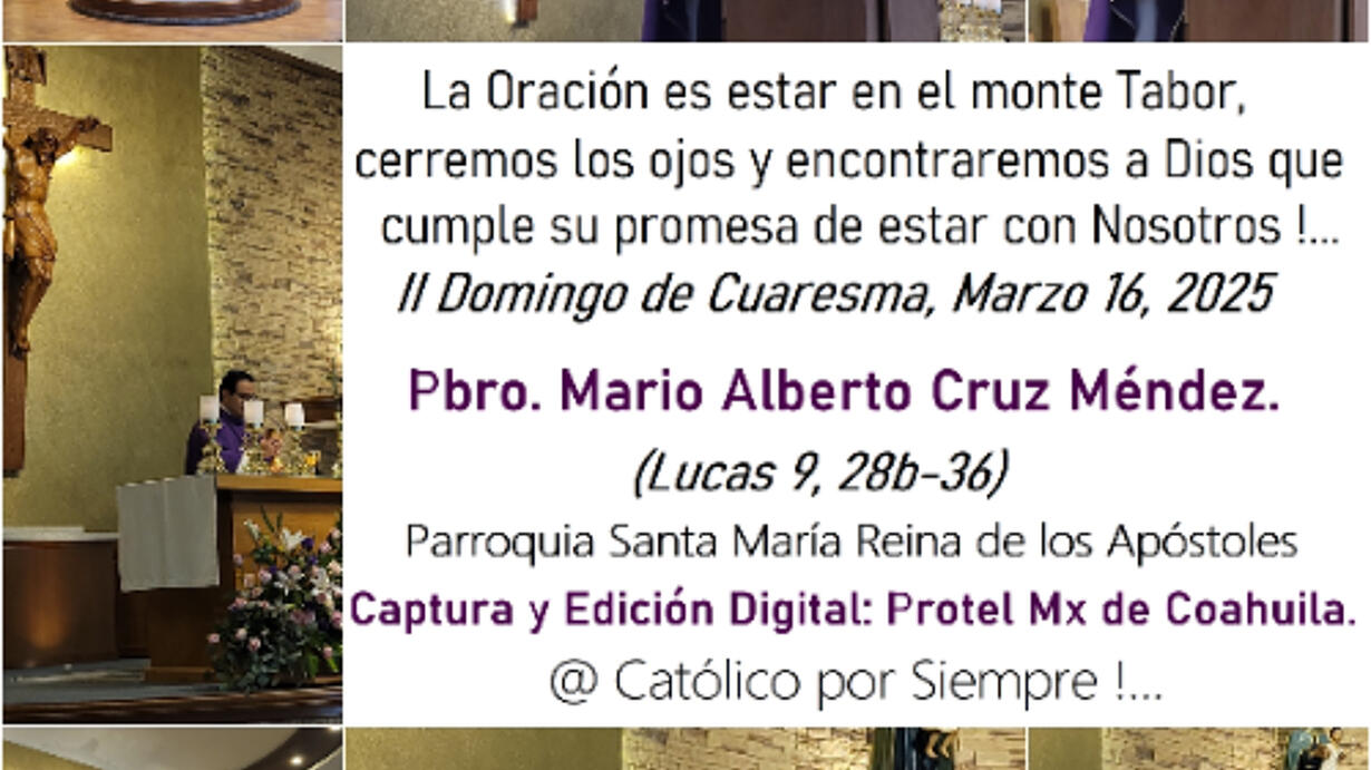 " Cerremos los Ojos y encontraremos a Dios que cumple su promesa de estar con Nosotros !..." Evangelio y Homilía del Segundo Domingo de Cuaresma - 16 de Marzo, 2025. Pbro. Mario Alberto Cruz Méndez Parroquia Santa María Reina de los Apóstoles Pastoral de Comunicación SAMARA #2025 (San Lucas 9, 28b-36) - Ciclo C. Podcast # 967 - 13 años a tu Servicio @ Católico por Siempre !...