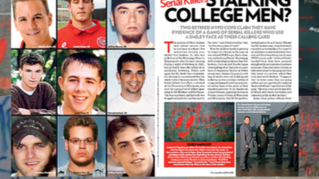The Smiley face murder theory (variations include Smiley face murders, Smiley face killings, Smiley face gang, and others) is a theory advanced by retired New York City detectives Kevin Gannon and Anthony Duarte, and Dr. Lee Gilbertson, a criminal justice professor and gang expert at St. Cloud State University.[1] They allege that a number of young men found dead in bodies of water across several Midwestern American states from the late 1990s to the 2010s[2] did not accidentally drown, as concluded by law enforcement agencies, but were victims of a serial killer or killers.