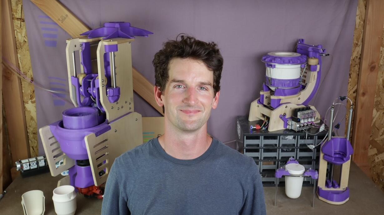 Chris Pratt is a mechanical engineer who makes double walled ceramic mugs. After being laid off during Covid Chris started designing and making plaster molds for slip casting. Over the past few years Chris has refined his process with automated casting and glazing machines.