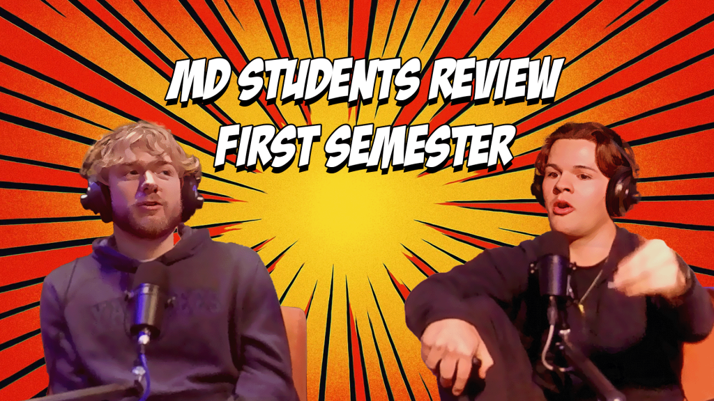 Jonah Albrecht, Trever Maiers, Alex Johnson, and Chris Ceplecha review the M1 semester and how they survived it. You’ll hear about what habits they had to drop, and which of their experiments in learning were a waste of time. Who did they lean on? What made it possible? What did they trip over, and how did right themselves? Their stories should give hope to future students that while medical school is tough in ways that are unpredictable, by working together–whether teaching each other, admitting when they needed help, and taking advantage of the resources available to them–it’s not only possible, but “fun!”