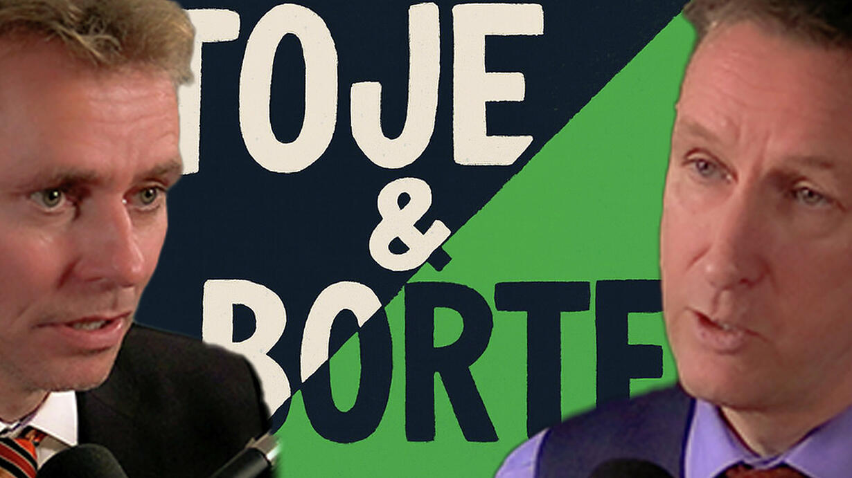 Toje & Borten #2: Asle Toje er statsviter som jobber innenfor internasjonal politikk. Ola Borten Moe er politiker (Sp), forretningsmann og gårdbruker.