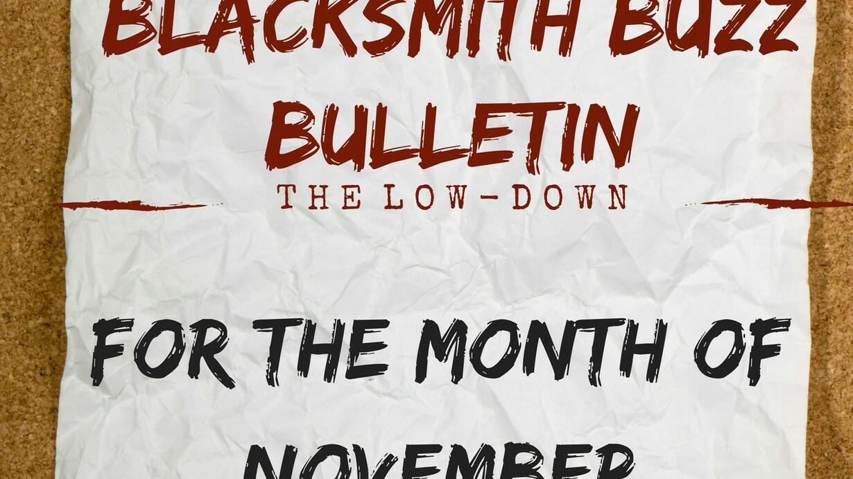 This is the monthly Blacksmith Buzz Bulletin. Where you get the low-down about upcoming classes and events that are happening in the following month, I'll be telling you about classes and events happening in November 2018.