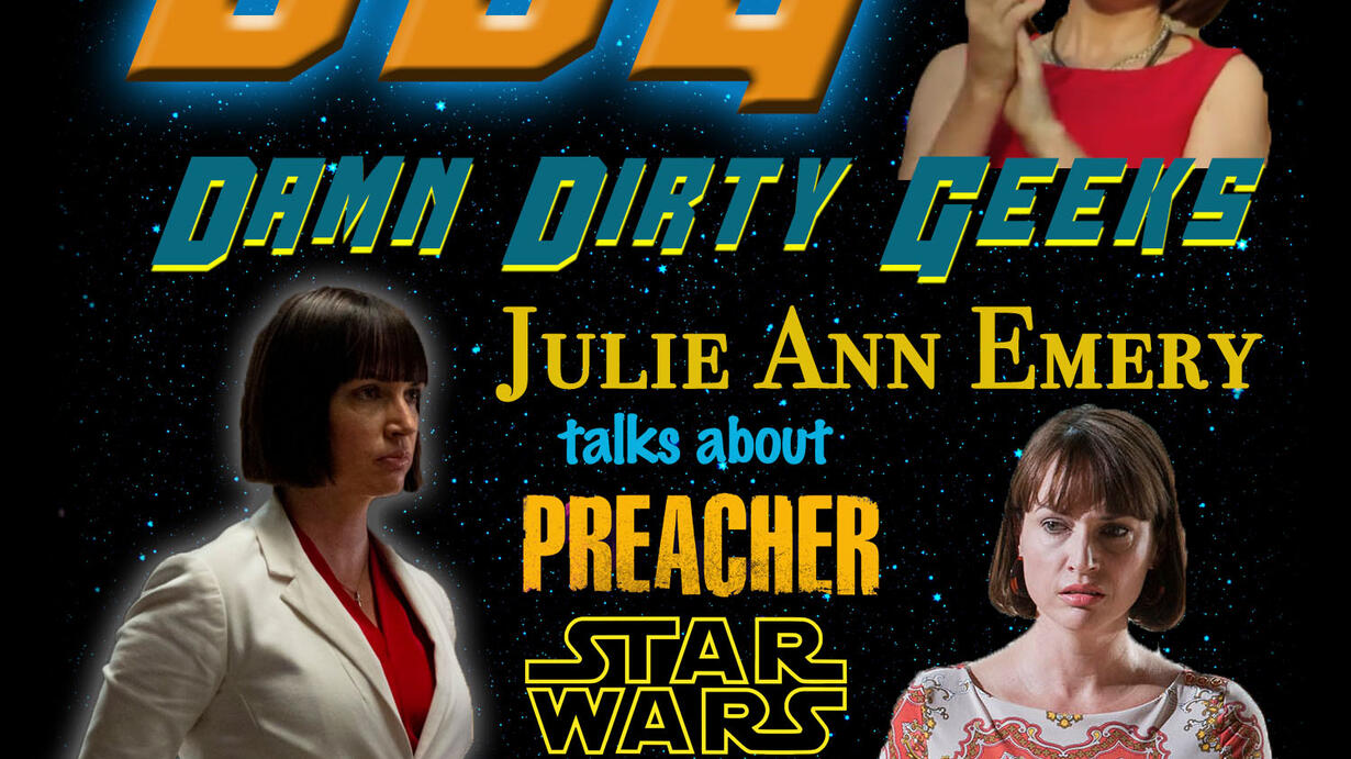 In Part 1 of a special two-part episode, the Damn Dirty Geeks welcome the amazing Julie Ann Emery! Having appeared on such hit shows as FARGO, BETTER CALL SAUL, CATCH-22 and the insane AMC series PREACHER, this versatile actress has demonstrated an ability to slip into all kinds of different characters.