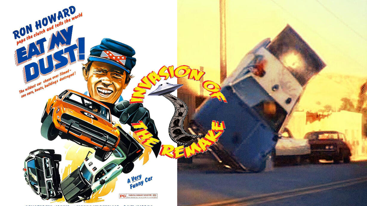 Part Fast & Furious, part Dukes of Hazard, Ron Howard stars in this Roger Corman produced action, comedy Eat My Dust! (1976). Eat My Dust! is about a boy who tries to impress a girl by giving her a ride in a fast car...a fast car he has just stolen! His father isn't impressed, he's the Sheriff after all. It may be hard thinking of Richie Cunningham stealing a car, or the director of Solo: A Star Wars Story for that matter, but it happened and Invasion of the Remake is here to assess this insane chase film while trying to rebuild this car flick from the ground up. Don't be last in the race, listen to this weeks episode now or you will Eat My Dust!