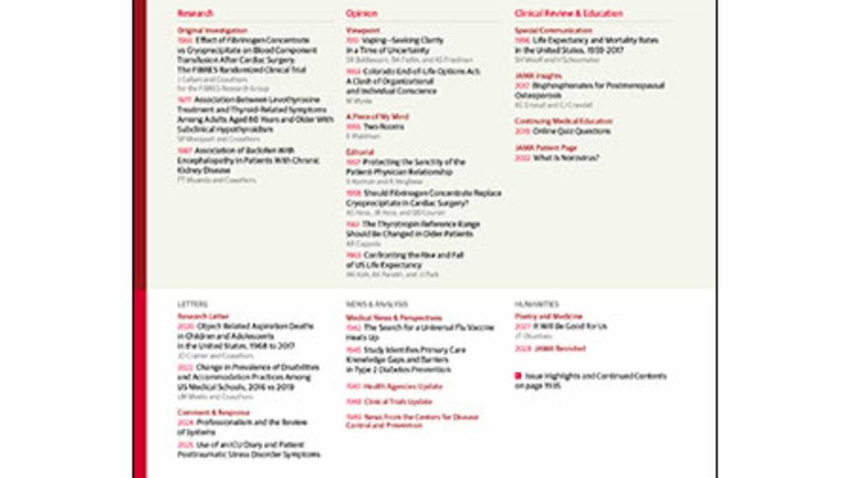 Editor's Summary by Mary McDermott, MD, Deputy Editor of JAMA, the Journal of the American Medical Association, for the November 26, 2019 issue