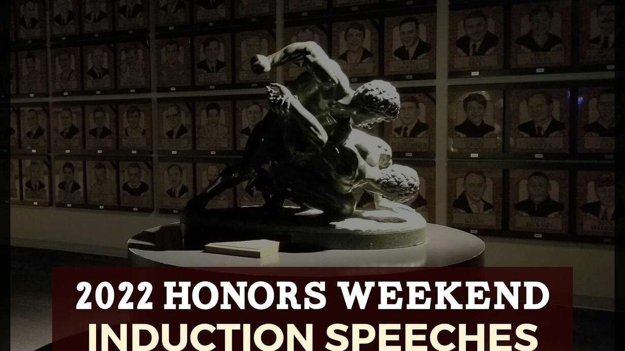 The 2022 National Wrestling Hall of Fame Honors Weekend closed out with its annual induction program featuring all the honorees. The Class of 2022 featured Meritorious Official Tom Clark (posthumously), Order of Merit recipient Mike Moyer, Medal of Courage recipient Melissa Simmons, Outstanding American Mario Lopez and Distinguished Members Clarissa Chun, Sara McMann, Andy Rein and Jake Varner. The program includes highlight speeches and video presentations. Also honored are Dave Schultz High School Excellence Award winner Cory Land of Alabama and Tricia Saunders High School Excellence Award winner Sofia Macaluso of New York.
